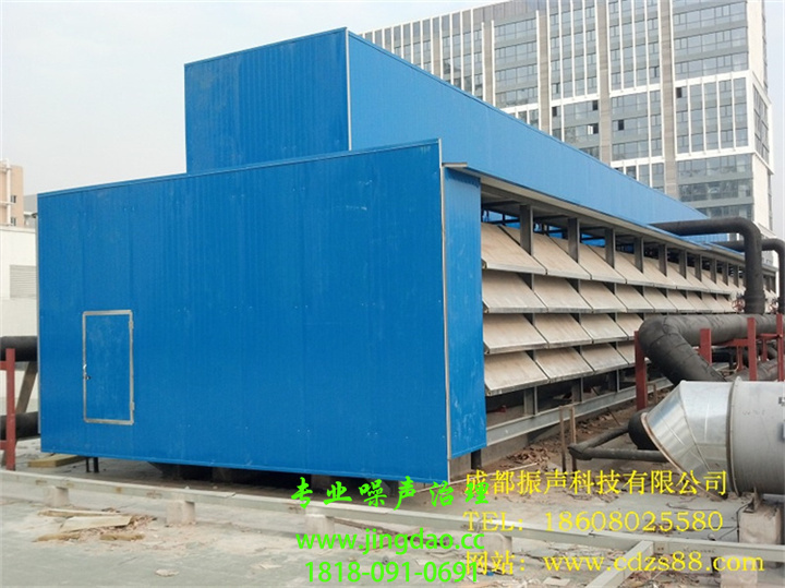 根据冷却塔的声源特性、噪声传达路径等,在噪控恳求严厉的情况下通常可采用以下控制手法:在冷却塔外围建立一个高性能内吸外隔式隔声间,将大多数噪声控制在隔声间内部;在隔声间顶部冷却塔排电扇的上方方位设备排风消声器,以降低电扇的排风噪声;在隔声间附近立板的恰当方位开设进风通道,在进风通道方位上设备进风消声器,在确保机组通风恳求的前提下,避免淋水噪声和机械噪声通过进风道向外传达。而在噪控恳求不严厉或是噪声源仅在某个定向范围内存在污染疑问时可采用设备声屏障的解决方案。